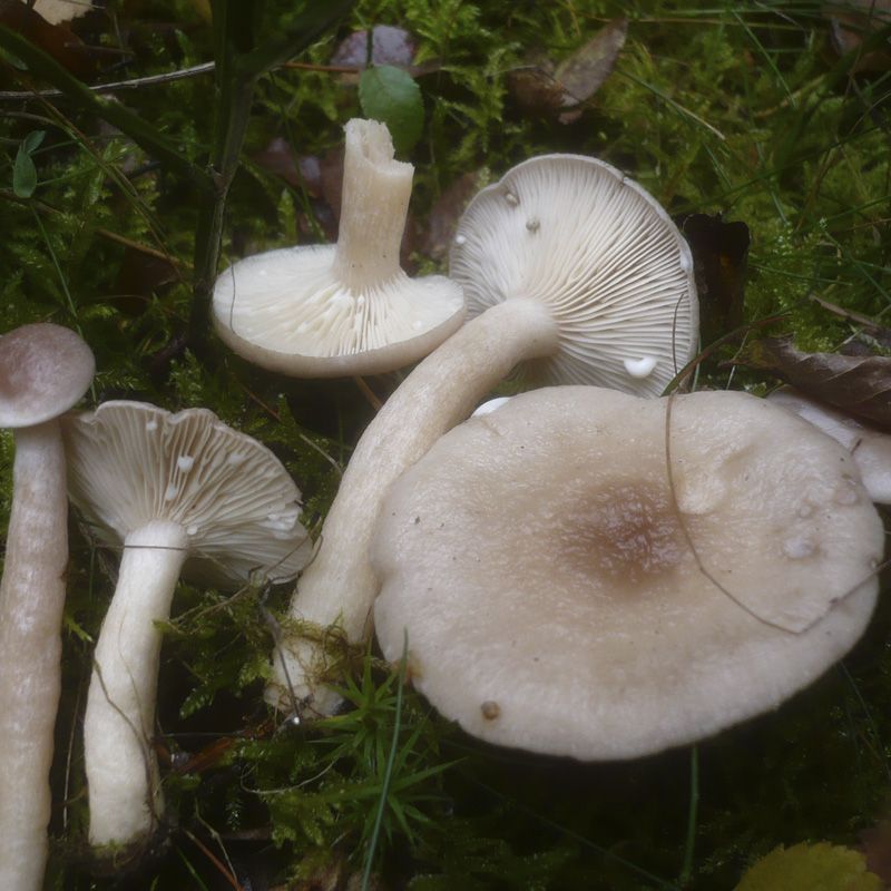 Капелюшок гриба забарвлений в коричневий або бордовий колір, по центру більш насиченого кольору. Висота ніжки від 4 до 8 см., В діаметрі близько 0,5-1 см., Довгастої циліндричної форми, У зрілих грибів ніжка стає порожнистої, пофарбована в коричневий або бежевий колір. Гриб характеризується рясним молочним їдким соком і м'якою ламкою м'якоттю без яскраво вираженого запаху.