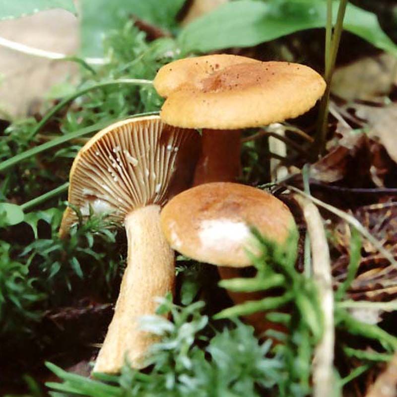 Висота ніжки близько 3-8 см., в діаметрі від 0,8 до 1,2 см., пофарбована в той же колір, що і капелюшок, у зрілих грибів стає порожнистим. Молочний сік гриба пофарбований у білий колір, немає яскраво вираженого запаху, м'якоть досить щільна, має помаранчеве забарвлення. Плодоносять молочні судини з липня по жовтень, гриб мікорізний, росте близько беріз і дубів, а також близько ялин. Віддає перевагу рости на підстилці з моху поодинці, або в невеликих групах.