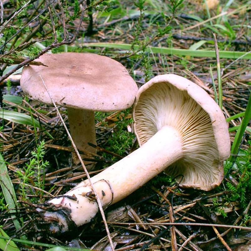 Гриб з сімейства Сироїжкових, також відомий під назвою сіро-рожевий груздь. Капелюшок досить великого розміру від 8 до 15 см., в діаметрі, круглої форми, пізніше має воронкоподібну форму, поверхня гладка, забарвлення гриба сірого кольору з рожевим відтінком.