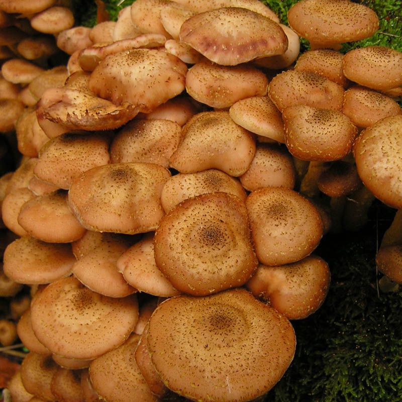 Ніжка у висоту виростає від 8 до 10 см., В діаметрі від 1 до 2 см., Вгорі жовто-коричневого кольору, знизу сіро-коричнева. На поверхні є лусочки, внизу ніжки грибів можуть між собою зростатися, кільце білого кольору на ніжці перебуває ближче до капелюшка. Спори гриба овальні, мають біле забарвлення. Колір капелюшка може залежати від дерева, на якому ростуть гриби, на акації і тополі забарвлення буде жовтого відтінку, на дубах коричневого кольору, у хвойних порід дерев червоно-коричневого кольору. Плодоношення триватиме з серпня до заморозків, температура від +10 до +15 є найбільш оптимальною.