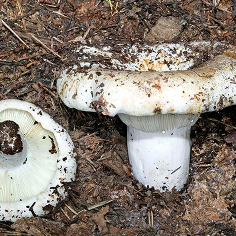 Гриб з сімейства Сироїжкових, плодове тіло досить великого розміру, діаметр капелюшка може досягати близько 30 см., В лісах зустрічаються досить рідко. Форма капелюшка опукла, по центру має воронку. У молодих грибів капелюшок має біле забарвлення, з часом на капелюшку з'являється характерний наліт коричнево-помаранчевого кольору. Шар з пластинками має біле забарвлення, самі пластинки тонкі і крихкі. Ніжка гриба масивна, має біле забарвлення, на поверхні можуть бути коричневого кольору плями, близько підстави розширюються. М'якоть соковита, білого кольору, з приємним грибним ароматом. Споровий порошок має біле або бежеве забарвлення.