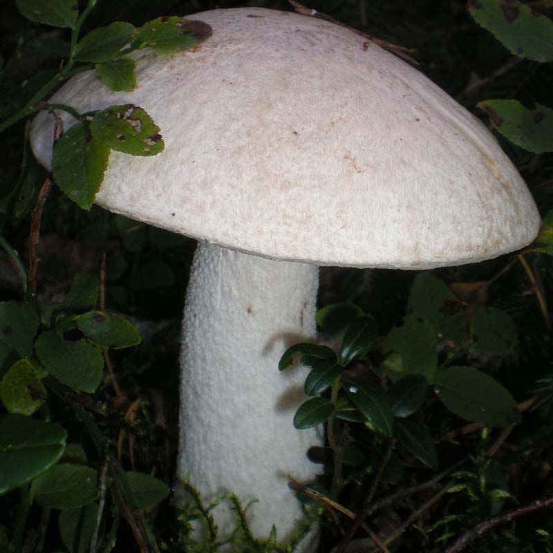 Гриб відноситься до їстівних, капелюшок гриба зазвичай становить в діаметрі від 4 до 15 см., Зустрічаються екземпляри з капелюшком в діаметрі до 25 см., Має форму півсфери, з часом стає подушкообразною. Капелюшок пофарбований в білий колір, іноді з відтінками рожевого, коричневого або жовтого кольору. Поверхня капелюшка суха. Ніжка гриба досить висока, донизу потовщена, на поверхні покрита лусочками коричневого кольору. Шар з трубочками має пористу поверхню, білої або жовтого забарвлення, у зрілих грибів набуває сірого відтінку. У гриба досить щільна м'якоть, білого кольору, внизу має зеленувате забарвлення, на місці зрізу змінює колір на синій.