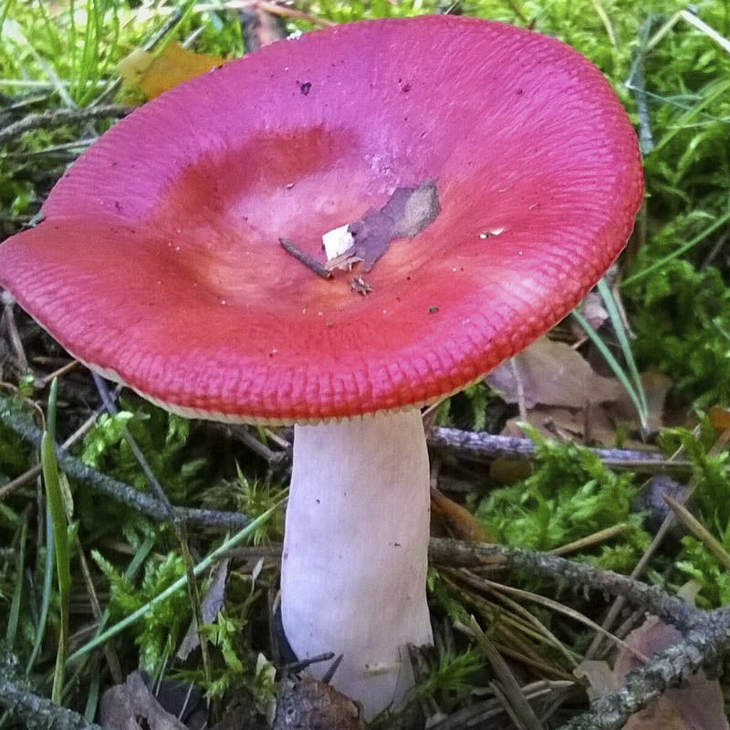 Гриб відноситься до сімейства Сироїжкових, капелюшок має діаметр 10 см., Напівкруглої форми, у зрілих грибів випрямляється, поверхня блискуча і волога, пофарбована в рожево-червоний колір. М'якоть білого кольору, добре ламається, під шкіркою має рожевий відтінок. Шар з пластинками має біле забарвлення, у дозрілих грибів набуває жовтий або сірий відтінок.