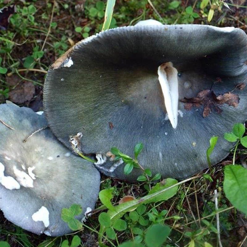 Діаметр капелюшка становить від 3 до 10 см, спочатку округлої форми, пізніше стає плоским з поглибленням по центру. Забарвлення капелюшка варіюється від синього до бузкового та оливкового відтінку.