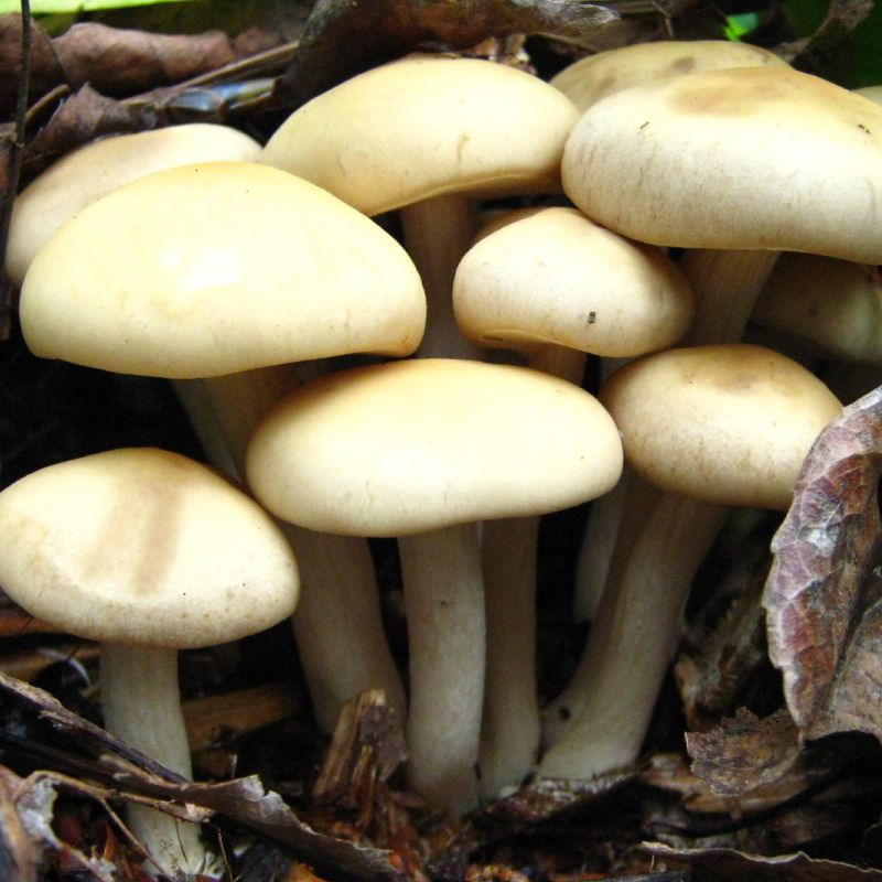 Капелюшки шириною 3-8 см, в молодому віці мають напівкулясту форму, яка з часом розкривається. За кольором може бути різною: жовтою, глинистою, на сонці вигорає до сіро-білого забарвлення. При вологій погоді можуть бути видні характерні риси зональності.