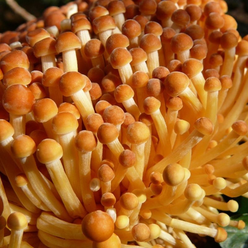 Цей гриб прийшов з Японії. Його назва означає - гриб під снігом, тому що в природі його можна зустріти не тільки влітку, але взимку на пеньках листових дерев. Капелюшки лісових енокітаке пофарбовані в оранжево-коричневий колір, а культурних - в білий.