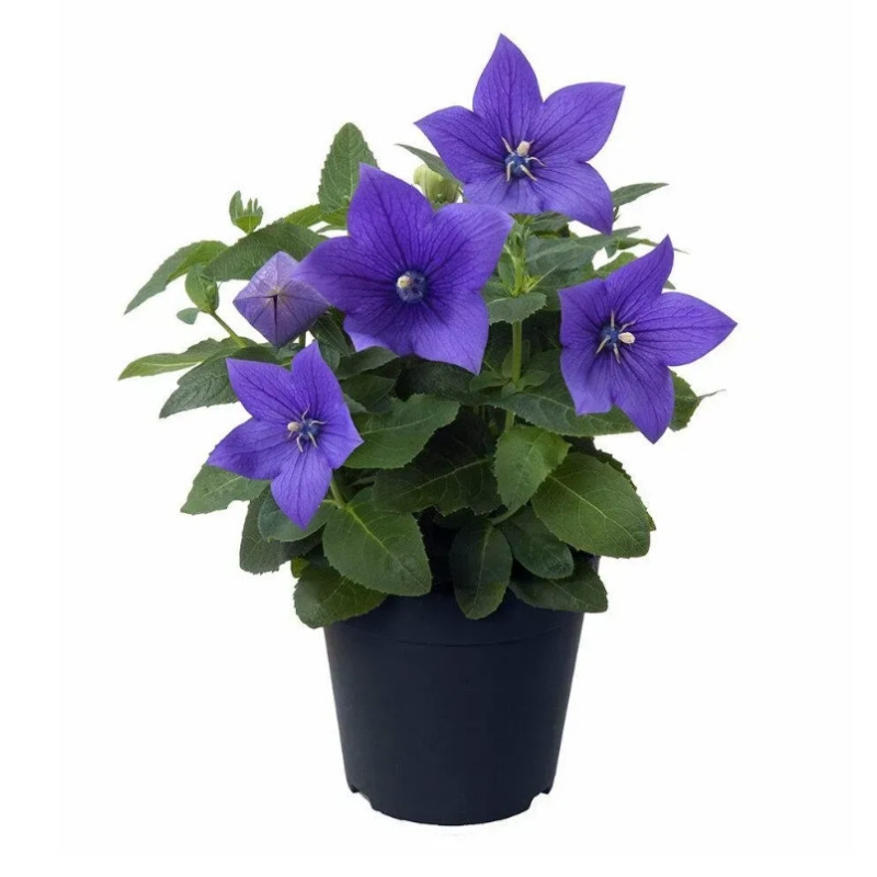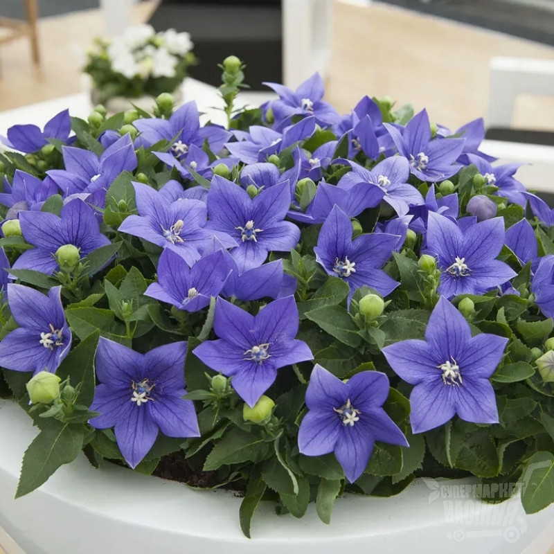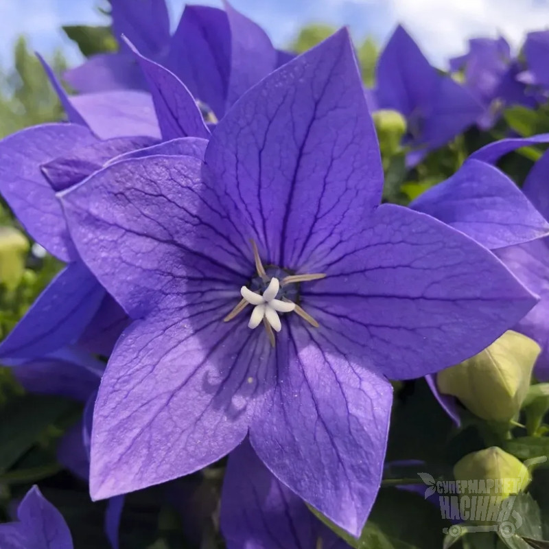 Платикодон Астра F1 Блю (синя) - чудова довгоквітуча багаторічна рослина, утворює компактний, рівномірно розгалужений кущик з великими, немов роздутими, бутонами і напівмахровими ширококолокольчатими квітами синього забарвлення на густо облиствених сизуватих пагонах.