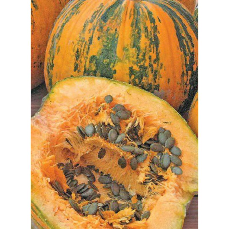 Легендарний сорт, який формує насіння без лушпиння! Це саме той гарбуз з якого отримують масло екстра-класу. Плоди овально-округлі, з тонкою шкіркою, м'якоть солодка і легко розварюється. Насіння темного кольору, що зумовлено високим вмістом хлорофілу. Крім того, містить у великій кількості антиоксиданти і ненасичені жирні кислоти.