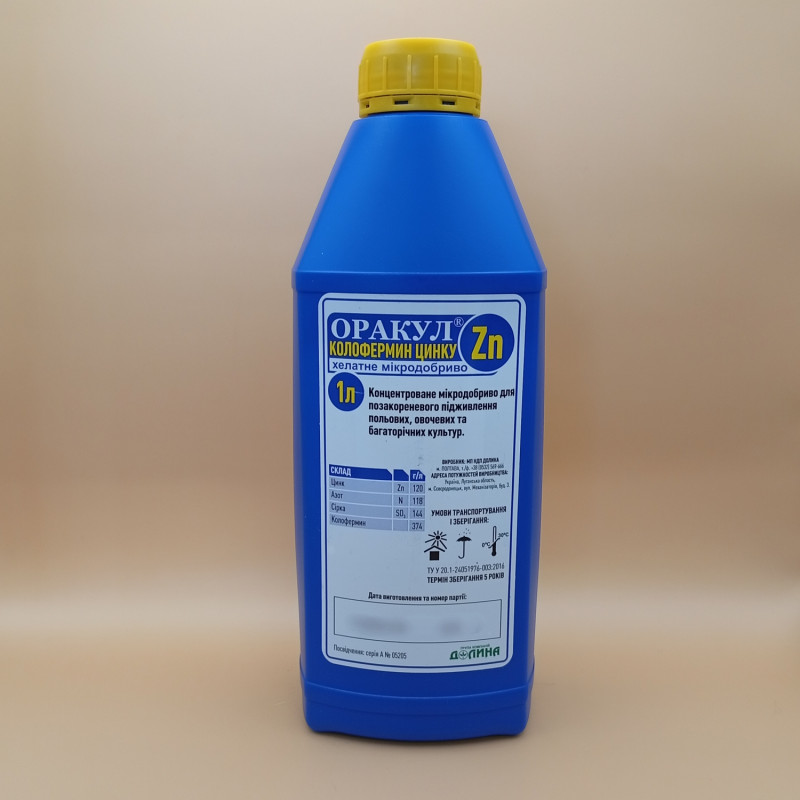 Препарат містить високу концентрацію іонів цинку, що забезпечує зменшення доз внесення та відповідно витрат на гектар. ОРАКУЛ® колофермін цинку дуже швидко засвоюється листям та усуває захворювання, викликані дефіцитом цинку.