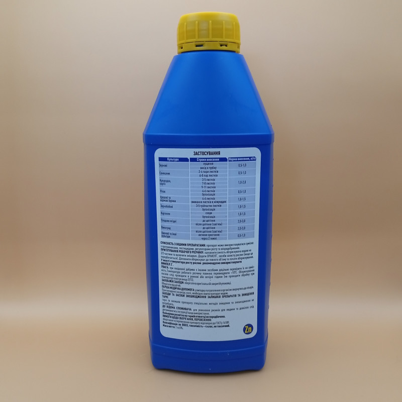 Препарат ефективно ліквідує дефіцит цинку в рослинах. Не містить баластних добавок, тому не викликає опіків листя, повністю засвоюється через листову поверхню рослин.