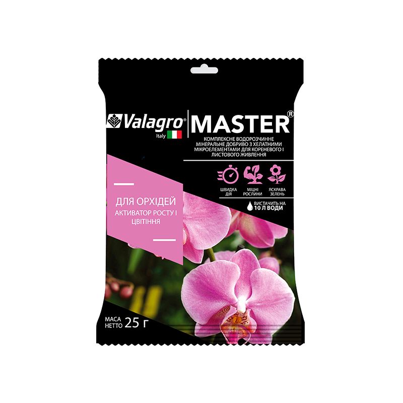 Збалансоване співвідношення макро- і мікроелементів добрива Master повністю задовольняє всі потреби в харчуванні орхідей.