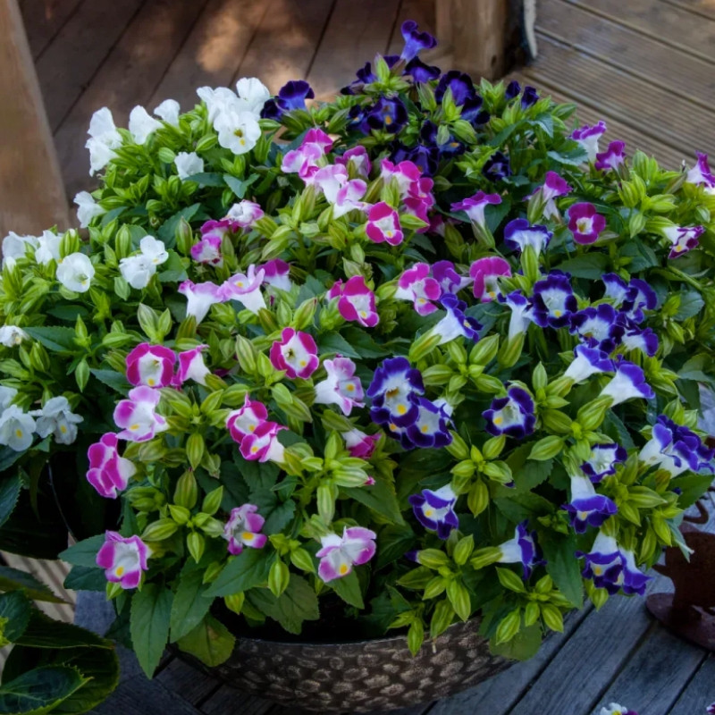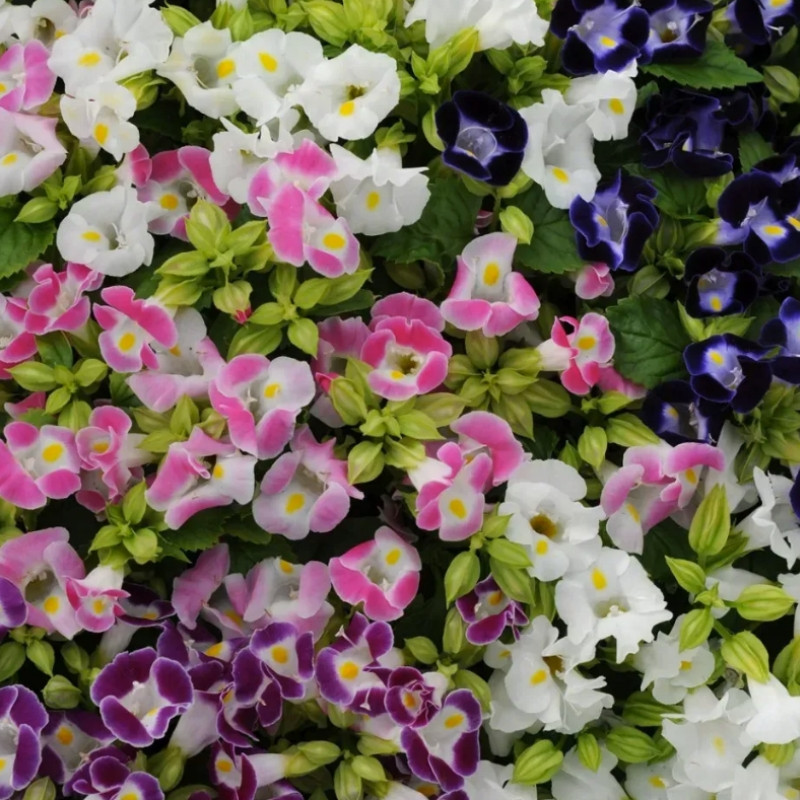 Має густе листя і відрізняється тривалим терміном цвітіння. Квітки мають різнє забарвлення та форму. Забарвлення може бути синім, білим, фіолетовим, рожевим та червоним.