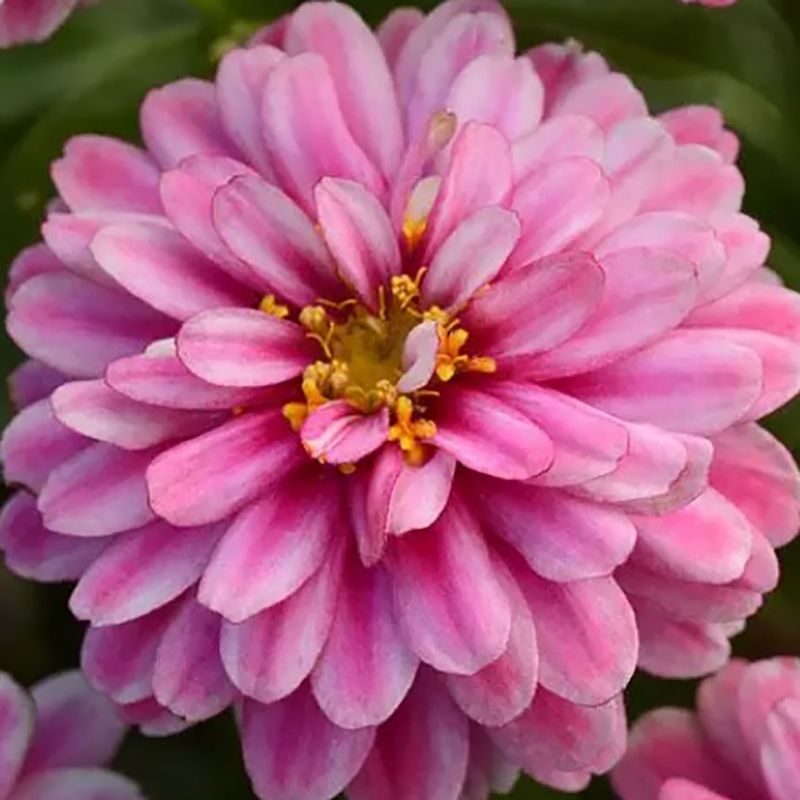 Цинія Сахара F1 разберрі ріпл низькоросла (Zinnia elegans Zahara F1 raspberry ripple) – найбільш стійка до спеки та хвороб серія.