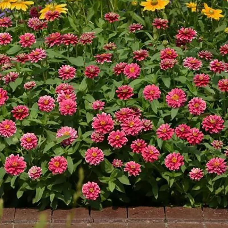Яскраві квіти цинії Сахара F1 не вигорають на пекучому сонці і чудово виглядають як у саду, так і на клумбі протягом усього літнього сезону.