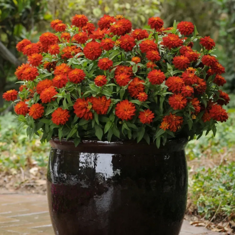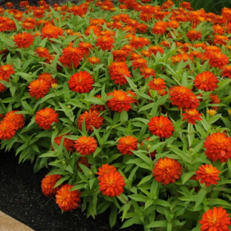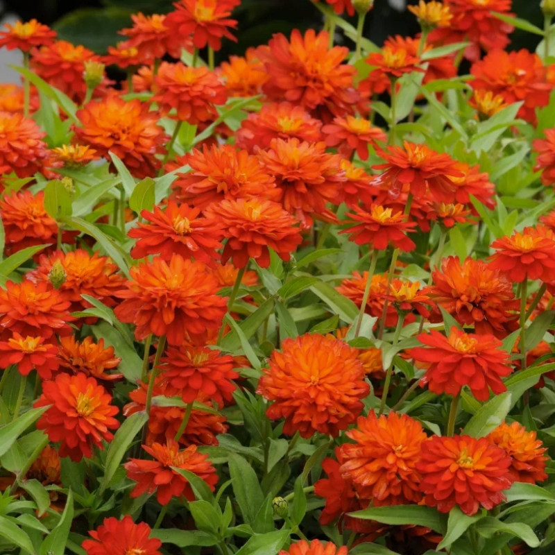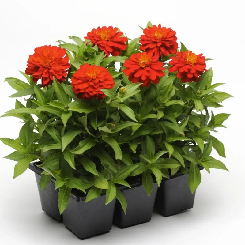 Цинія Сахара F1 файр низькоросла (Zinnia elegans Zahara F1 fire) – найбільш стійка до спеки та хвороб серія.