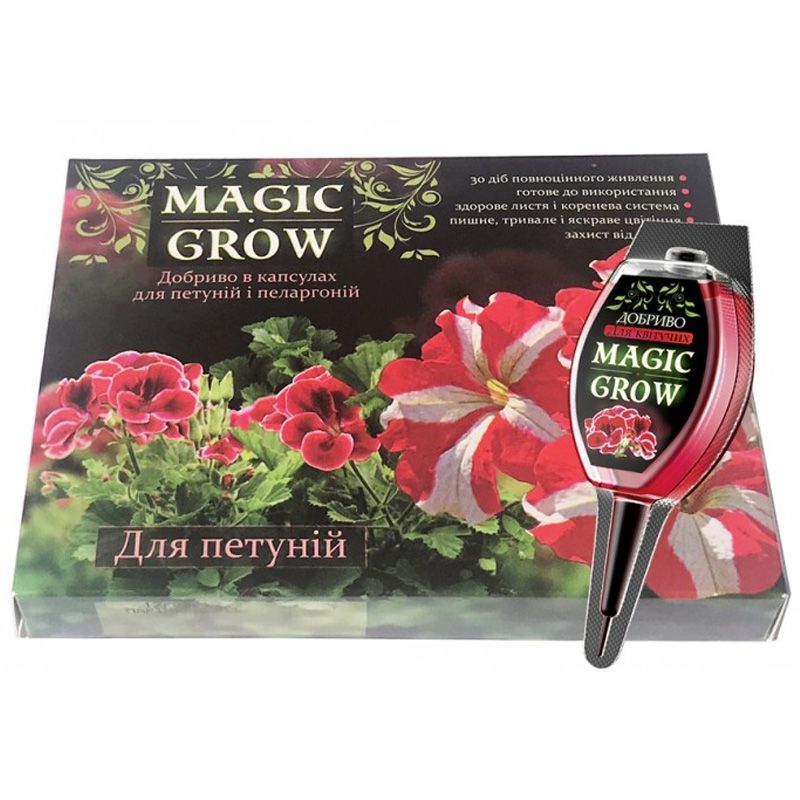 Магік Гроу для петуній і квітучих - використовується для більшості видів декоративно-квітучих рослин, вирощуваних на балконах і терасах: пеларгонія, петунія, сурфінія, вербена, фуксія, бегонія бульбова, хризантема, іпомея, астра, левкой, бальзамін, віола, настурція, гібіскус, чорнобривці та ін.