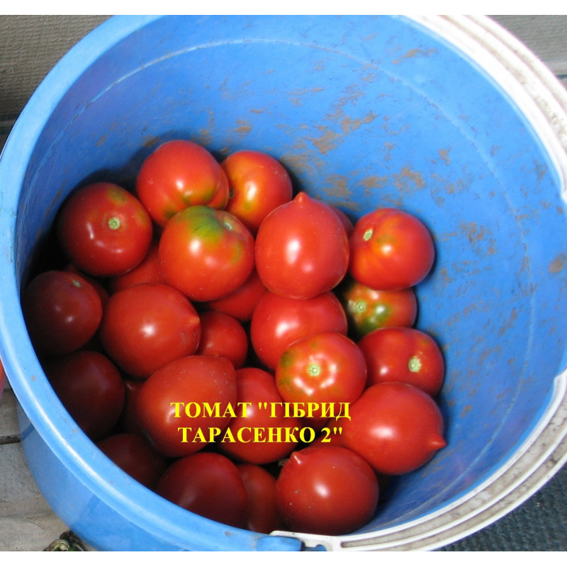 Томати гібрид Тарасенка 2 відноситься до середньостиглих сортів, мають краплеподібну форму, округлу. Щільна шкірка дозволяє консервувати помідори цілком, досить довго зберігати і перевозити. М'якоть соковита, смачна, відмінно підходить для приготування других страв чи закусок. Ці помідори не замінні у літніх салатах.
