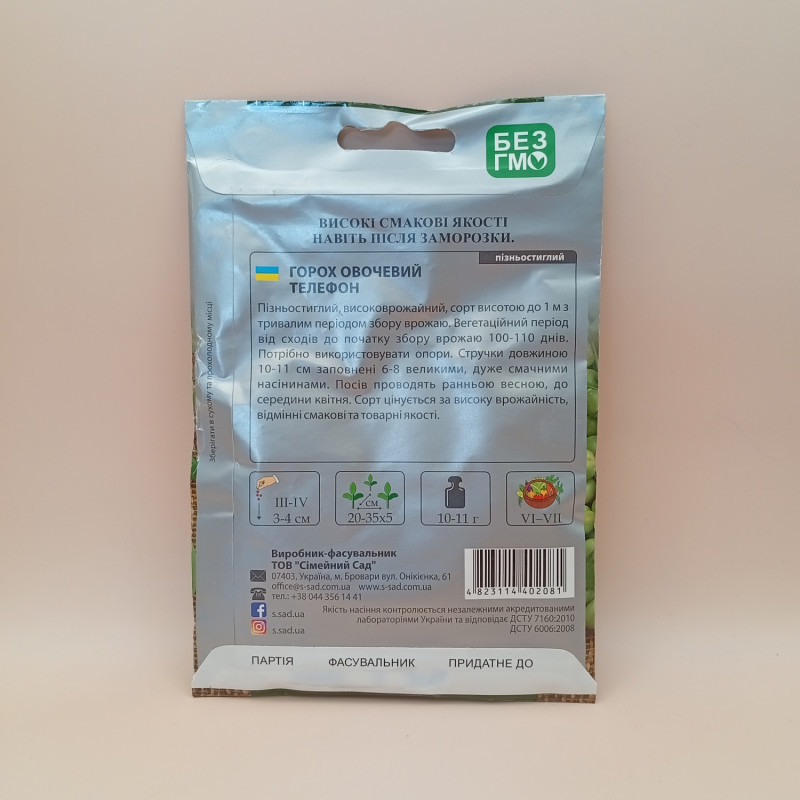 Володіючи прекрасними поживними властивостями, високим вмістом білка, овочевий горох сорту Телефон також може похвалитися своїми чудовими смаковими якостями, соковитістю горошин і відмінною врожайністю. Виростити плоди цього сорту гороху не складе для вас особливих труднощів, тому що рослина не є примхливою у догляді.