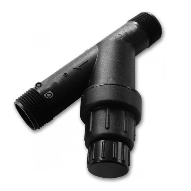 Проточний редуктор встановлюється після клапана або крана. Редуктор застосовується для зниження тиску в крапельних стрічках і трубках.