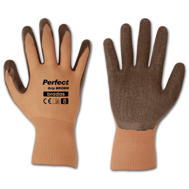 Тонкі трикотажні поліестерові рукавички, щільно облягають руку. Латексне покриття коричневого кольору має складчасту шорстку фактуру, що забезпечує щільне зчеплення з предметами і поверхнями.