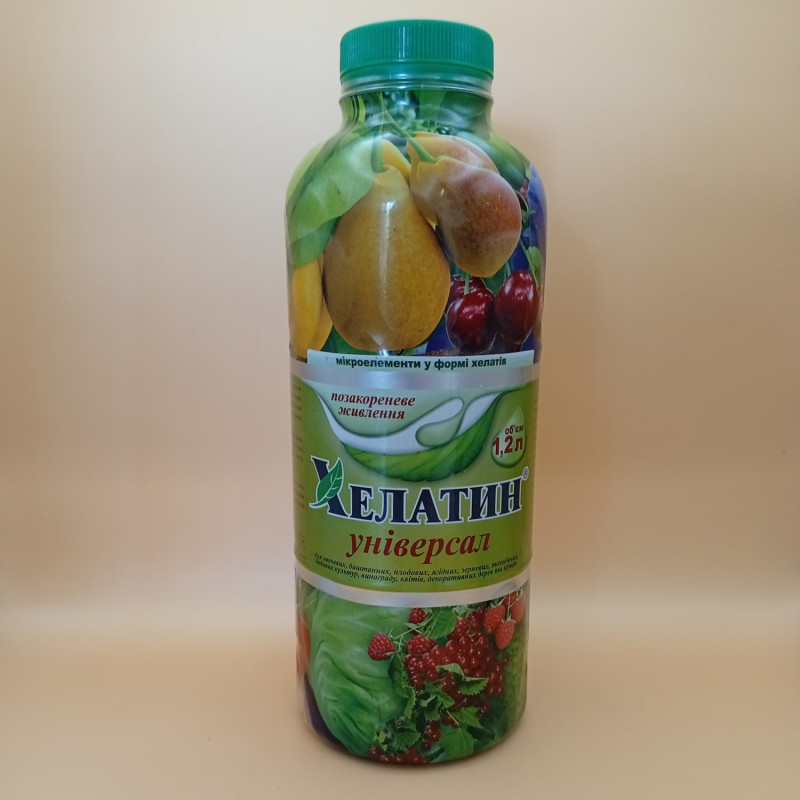 Хелатін Універсал - підходить для овочевих, ягідних, баштанних, плодових, зернових, технічних, бобових культур, винограду, квітів, декоративних дерев і кущів при ослабленні зростання і цвітіння рослини, ознаках хлорозу і некрозу, рясному обпаданні листя, зав'язі і квітів, надмірному опаданні плодів, загнивання вершин нирок, уповільнення розвиток коренів.