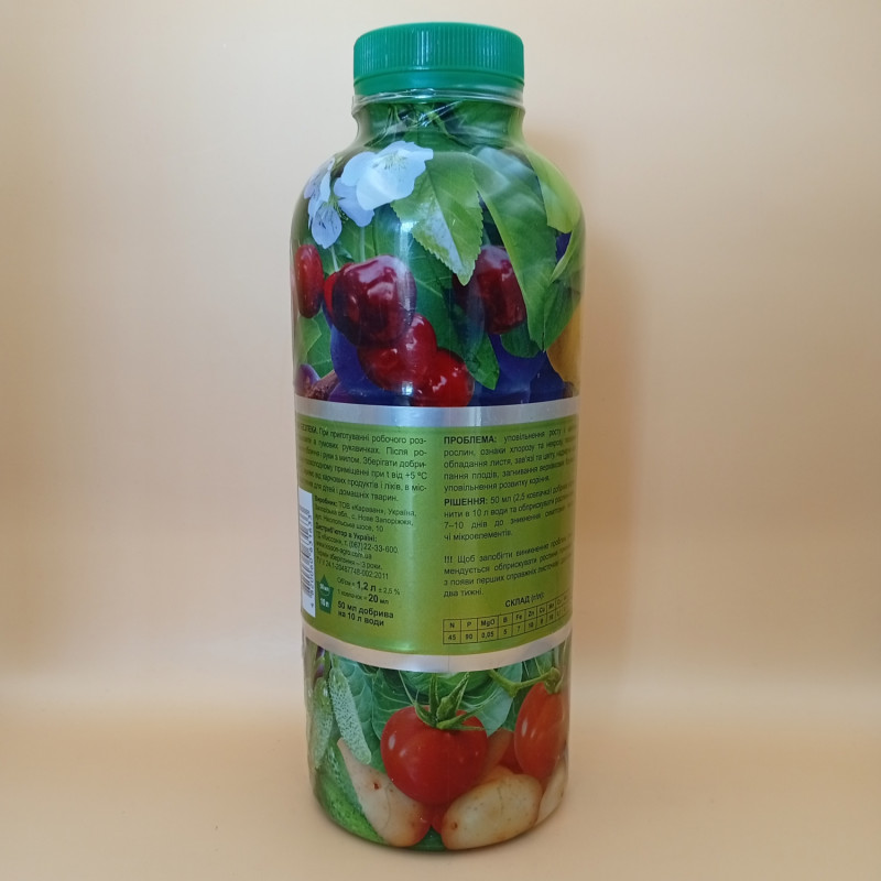 Склад: N-45; P-90; B-5; Fe- 7; Zn - 10; Cu- 3; Mn - 10; MgO- 5; Co-0,05; Mo - 0,1