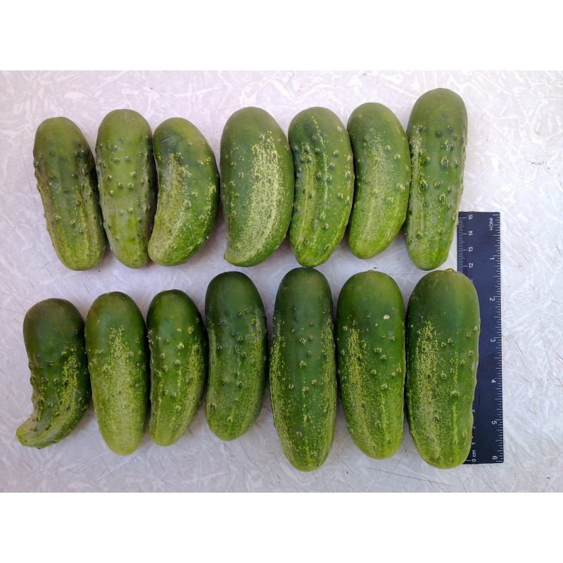 Зеленці однорідної гарної форми (2,8-3,1:1), помірно шиповані, з тонкою шкіркою, зеленого кольору, генетично без гіркоти.