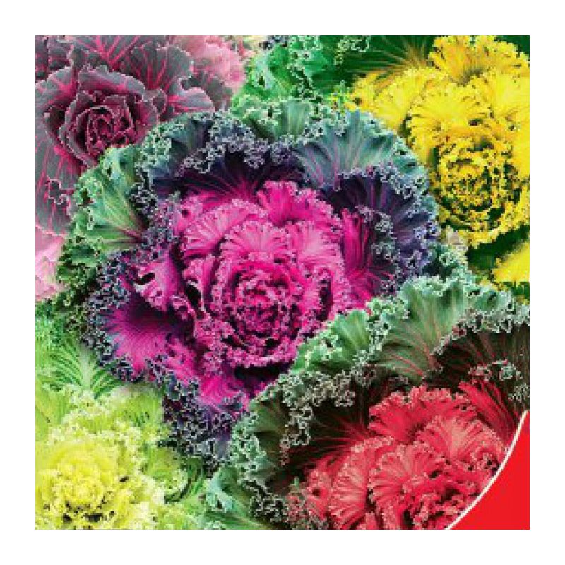 Дворічна декоративна рослина, висотою 60 см. Декоративні рослини надає розетка велике, округле, гофроване різнокольорове листя. Головку не формує.
