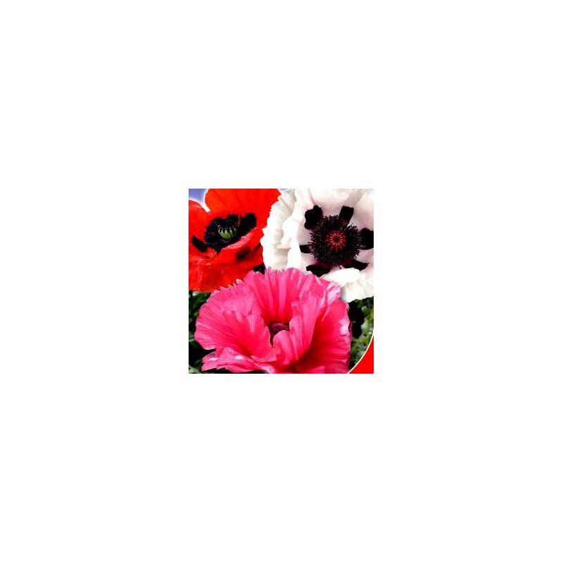 Чаші квіток цього декоративного сорту досягають 10-15 см в діаметрі. Висота рослини 60-80 см. Квітки червоні, рожеві, білі, помаранчьово-червоні з чорною підставою, пелюстки оточують чорні пильовики.
