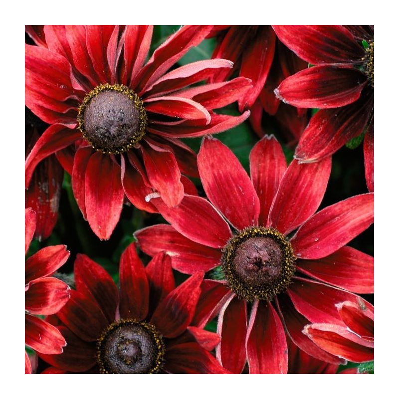 Рудбекія Черрі Бренді - дуже ранній сорт з великою кількістю бутонів і надзвичайно ефектних махрових суцвіть оригінального вишневого забарвлення.