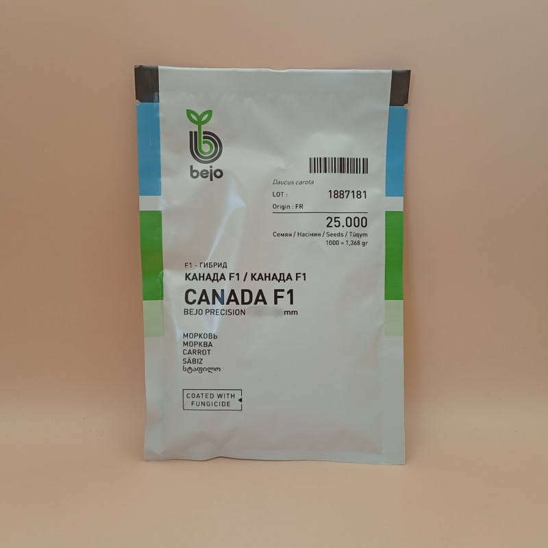 Канада F1 - гібрид моркви Шантане (1,8-2,0 мм) PR. Рослина пізніше (120-135 днів). Вага - 120-400 грам.