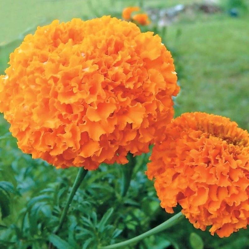 Квітки помаранчеві, суцвіття махрові до 10 см у діаметрі. Цвітіння починається в кінці червня і триває до заморозків.