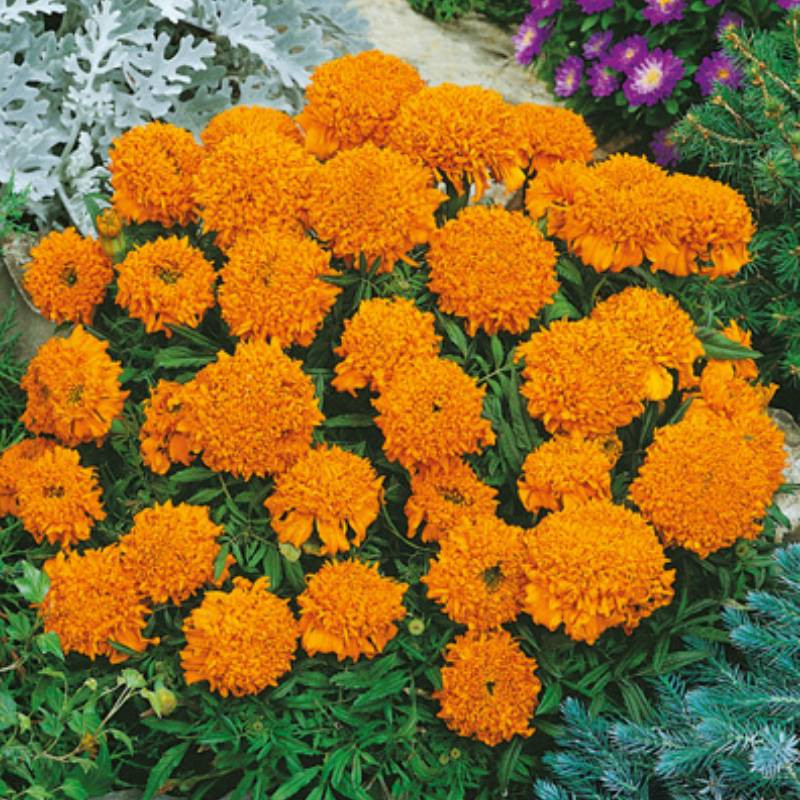 Чорнобривці Купідон помаранчеві африканські (Tagetes Cupid orange) – компактні рясно квітучі однорічники з яскравими суцвіттями.