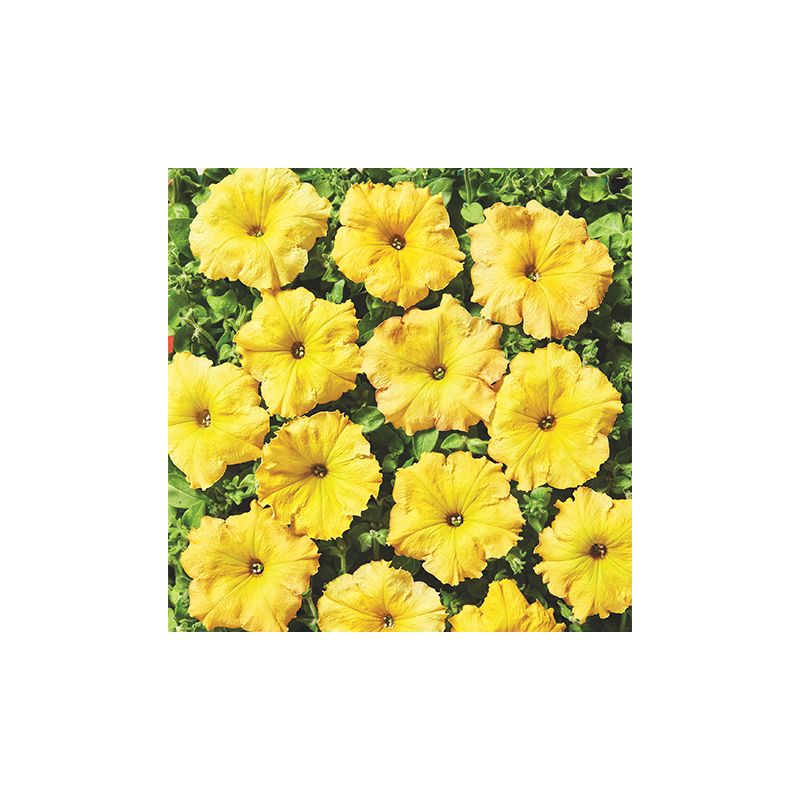 Петунія Лавина F1 жовтий каприз – однорічна ампельна рослина з суцвіттями кольору сонця.
