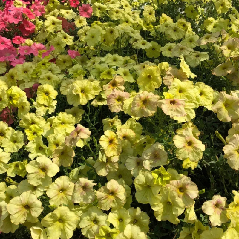 Петунія Лавина F1 жовтий каприз – це незвичайний гібрид своєрідного забарвлення. Жовті квіти холодних відтінків лайма і лимона c ніжно-рожевим примхливим відливом, які з'являтимуться на пелюстках при вищих температурах і сонячній погоді. Модне нині забарвлення, високо цінується в доступних асортиментах.