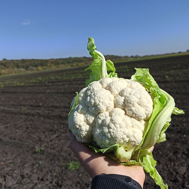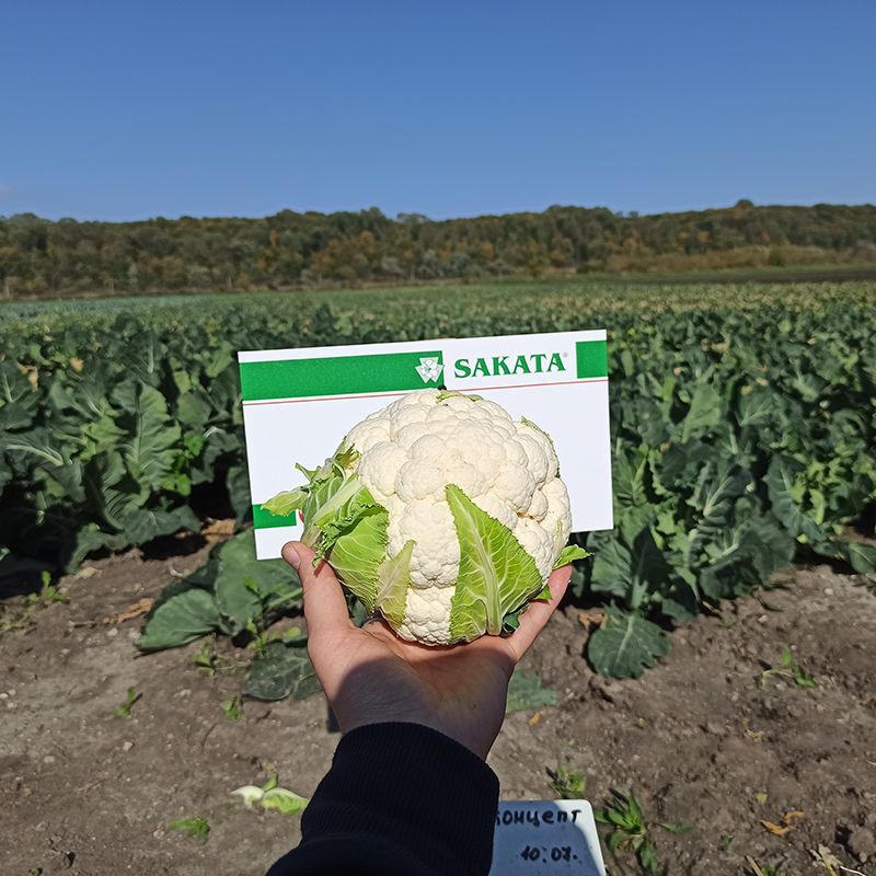 Характеристика плодів – Ідеально закрита білосніжна головка, куполоподібна, без ворсинок. Вага головки – 1-2,5 кг.