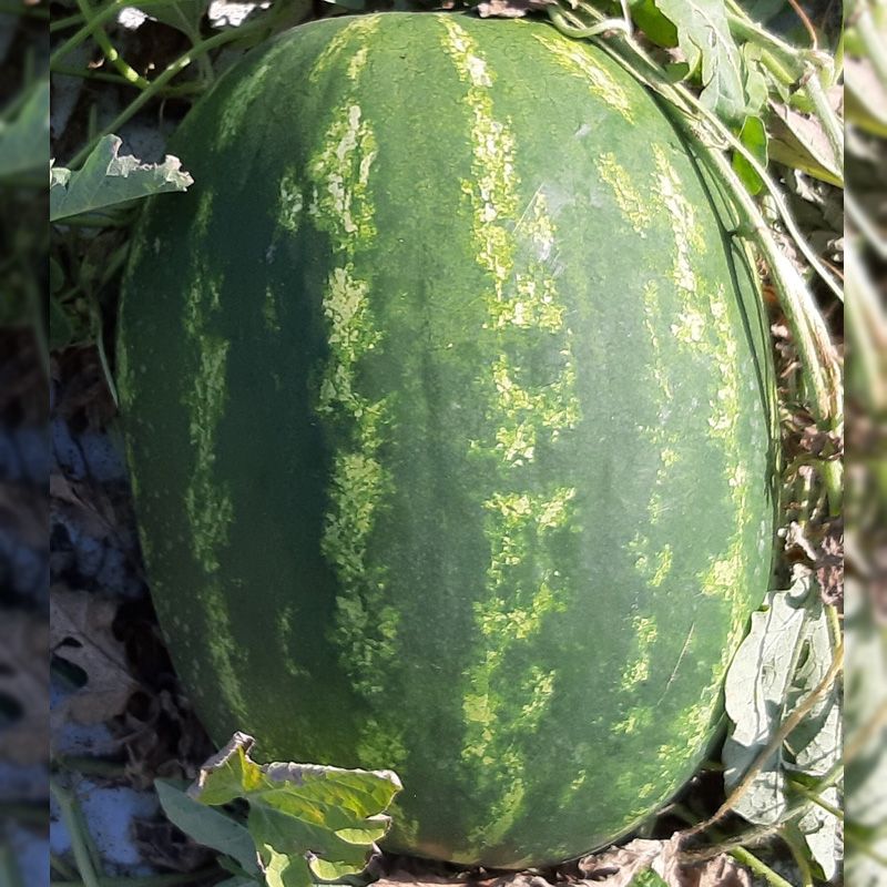 Характеристика плодів – Плоди витягнутої форми, з великими, зеленими смугами, вагою 12-15 кг. М’якуш темно-червоного кольору, соковитий, ароматний, з високим вмістом цукру (більше 13%).