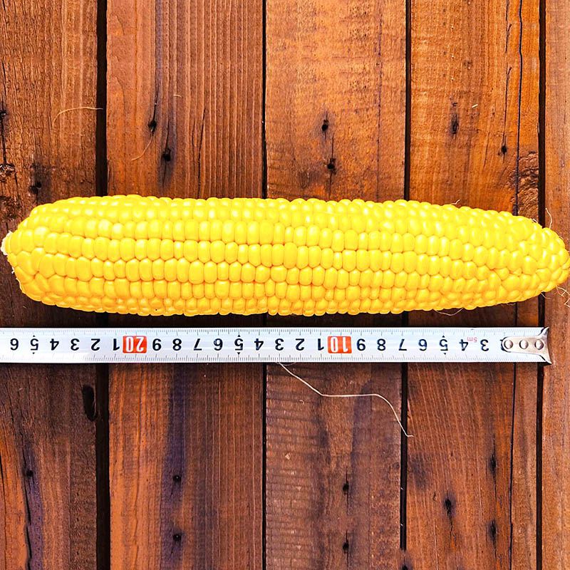 Характеристика плодів – Привабливий вигляд качанів. Початки довжиною 22-23 см, діаметр 5-5,5 см, 16-18 рядів зерен. Однорідний яскравий жовтий колір зерна. Ідеальні смакові характеристики гібрида – дуже солодкий і смачний.