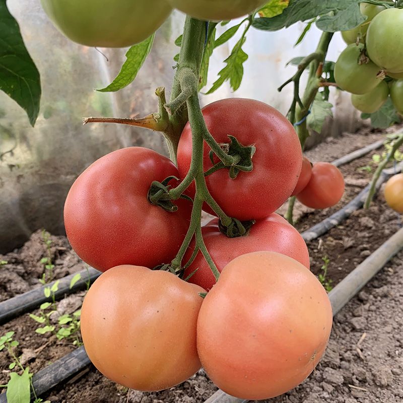 Характеристика плодів – Плоди щільні, великі, без стрижня, округлої форми, рожевого кольору до останньої кисті. Маса – 240-260 г. Незвичайно солодкий і ніжний смак.