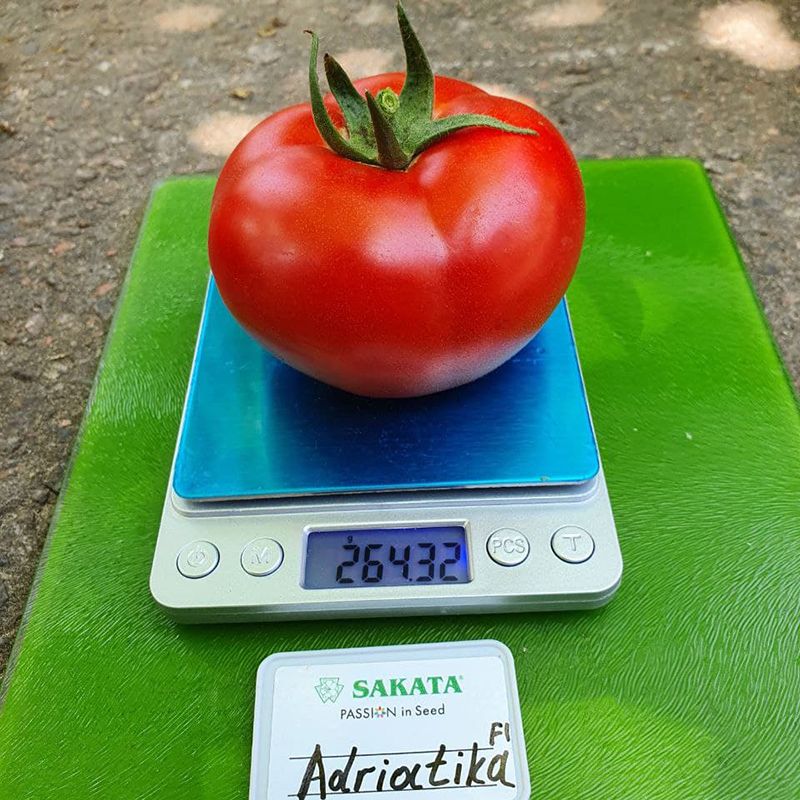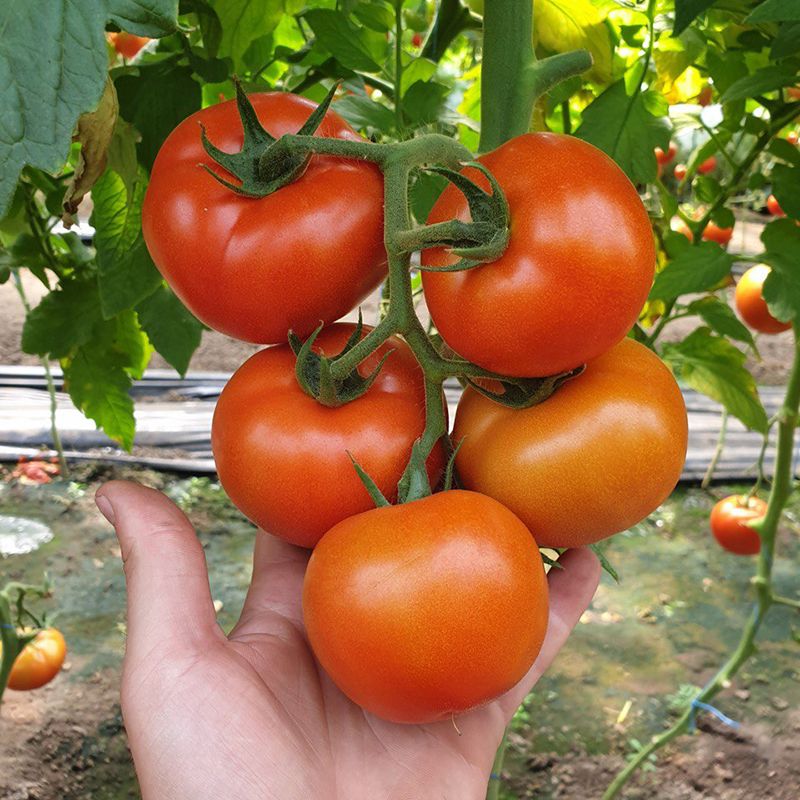 Характеристика плода – Плоди дуже щільні, округлої форми та насичено-червоного кольору із глянцем, вагою 180-200 г. Ідеально підходять для транспортування та мають високий показник лежкості. Плоди однорідні протягом усього періоду вирощування, не розтріскуються.