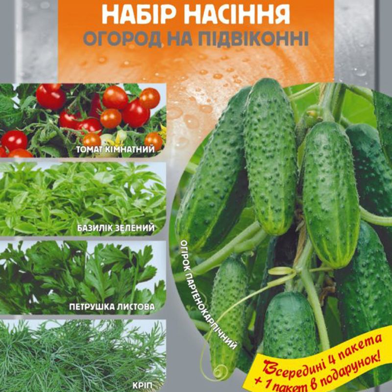 Набір насіння Город на підвіконні 4+1 – це набір рослин, які можна вирощувати у себе вдома протягом цілого року.