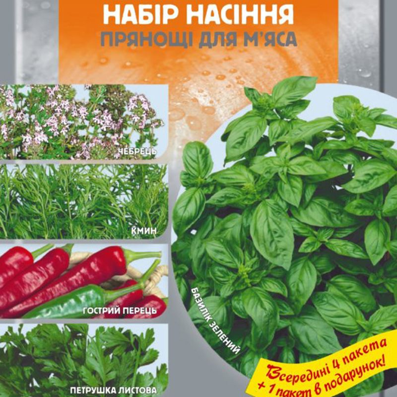 Набір насіння Прянощі до м'яса – це набір пряних рослин, який є незамінним помічником на кухні господині. Він зробить м'ясо більш апетитним і підкреслить його смак.