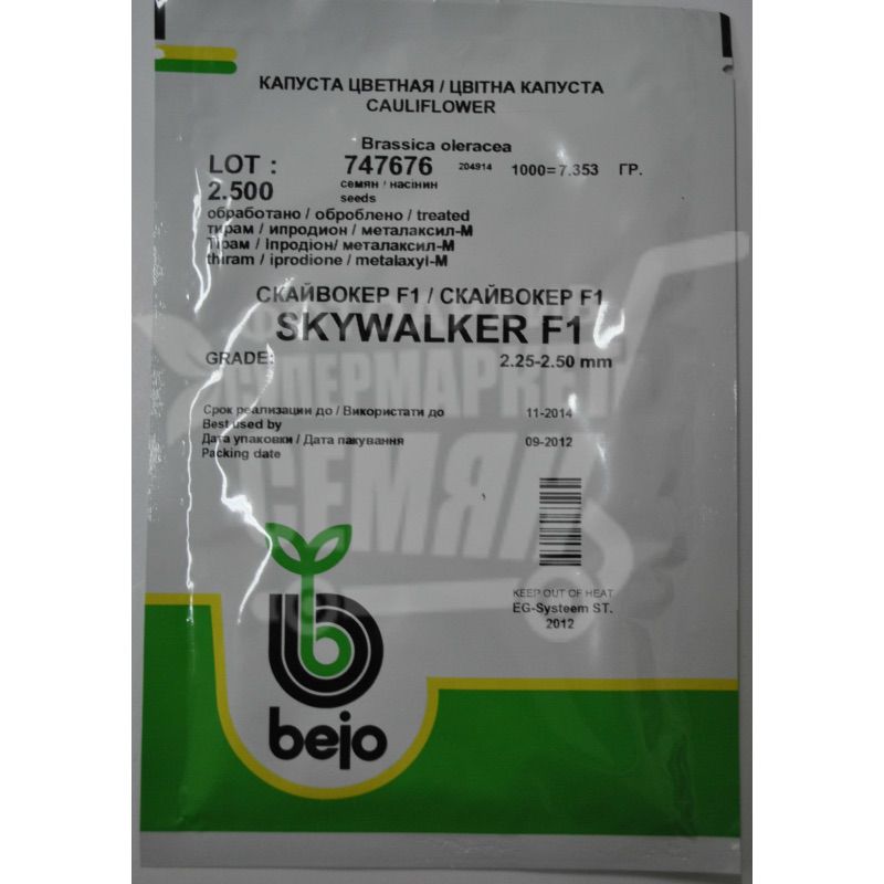 Скайвокер F1 насіння капусти цвітної голландської компанії Bejo. Кращий гібрид цвітної капусти для культивування восени. Качани щільні, білого кольору, добре вкриті листям, вагою 1,5-3,0 кг, неперевершеного смаку і привабливого товарного вигляду.