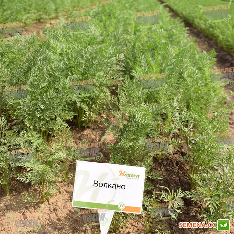 Волкано Ф1 - це пізньостиглий гібрид моркви Нантського типу (вегетаційний період триває майже 5 місяців/130 - 140 днів). Призначений для тривалого зберігання, механічної прибирання та свіжого ринку. Листовий апарат яскраво-зеленого кольору, прямостояче, добре прикріплений до коренеплоду. Коренеплоди яскраво-помаранчевого кольору, однорідні, циліндричної форми, довжиною близько 20 сантиметрів. Цей гібрид стійкий до альтернаріозу, оїдіуму, ямкової плямистості, пошкодження під час механічного прибирання, морозів, сріблення під час зберігання і розтріскування. Вирощують у всіх зонах України.