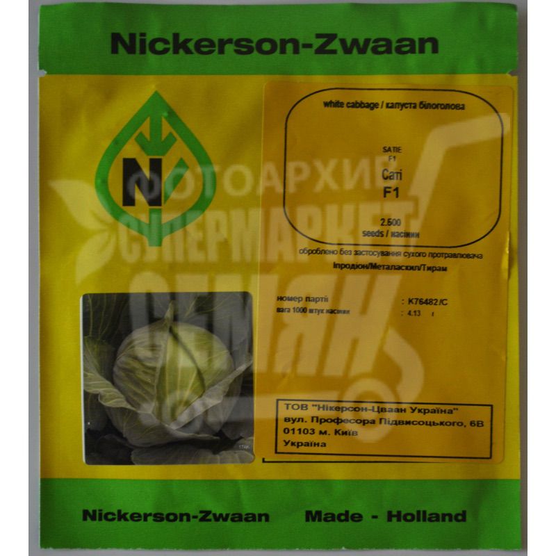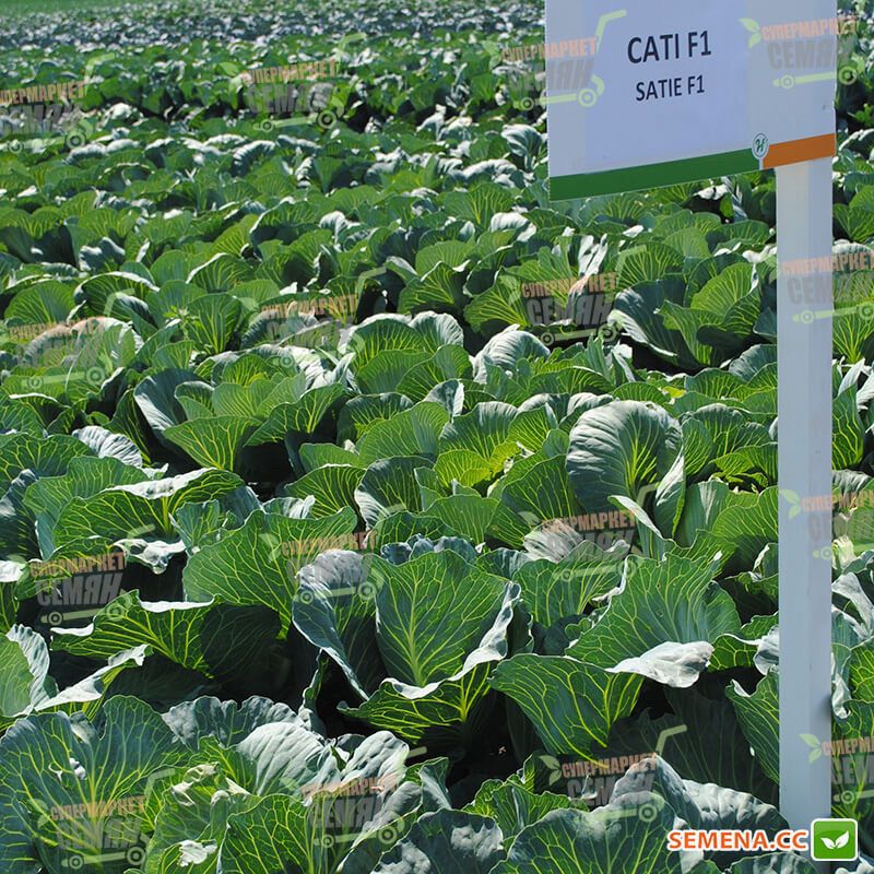 Саті Ф1 - це середньопізній гібрид білокачанної капусти, у якої період вегетації триває чотири місяці (120 - 125 днів). У цієї рослини добре розвинена коренева сисетма. Листя темно-зеленого кольору, з великим шаром воскового нальоту. Качани щільні, округлої форми, білосніжні, масою до 3 кілограм. Цей гібрид толерантно ставиться до пошкодження трипсами, стійкий до фузаріозу, може зберігається до 8 місяців. Саті Ф1 призначений для переробки і для споживання у свіжому вигляді.