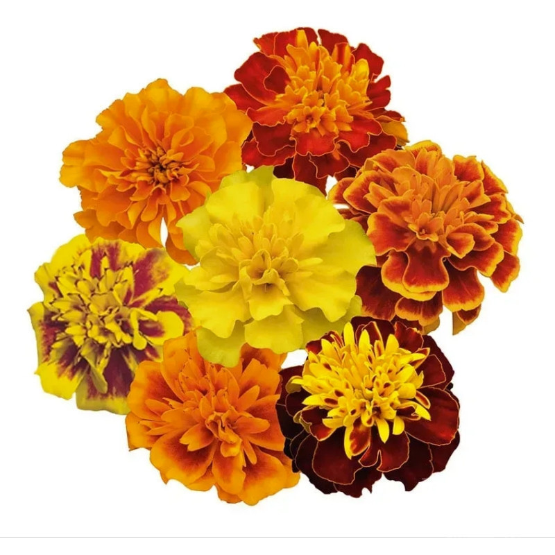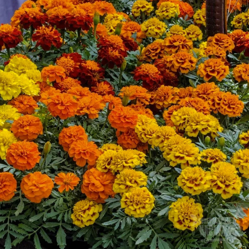 Чорнобривці розлогі Супер герой суміш (Tagetes patula Super Herо Mix) – однорічна рослина висотою 15-20 см.