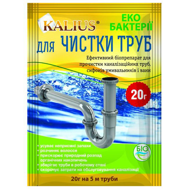 Біопрепарат Каліус (KALIUS) для прочищення труб – комплекс ефективних мікроорганізмів і ферментів, які використовуються для прочищення сильно забруднених каналізаційних труб, сифонів, кухонних мийок і ванн.