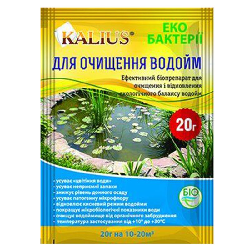 Біопрепарат Каліус (KALIUS) для очищення водойм – натуральний біологічний препарат на основі корисних мікроорганізмів і ферментів. Застосовується для природних, штучних, декоративних водойм, ставків.