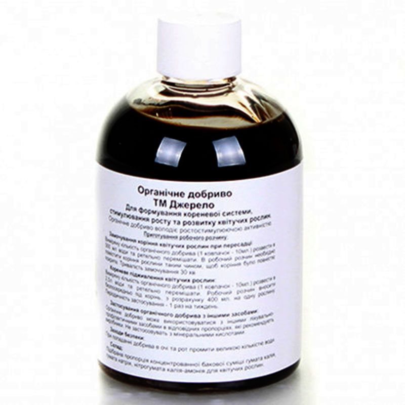 Склад: підібрана пропорція концентрованої бакової суміші гумату калію, гумату натрію, нітрогумату калію-амонію для квітучих рослин.