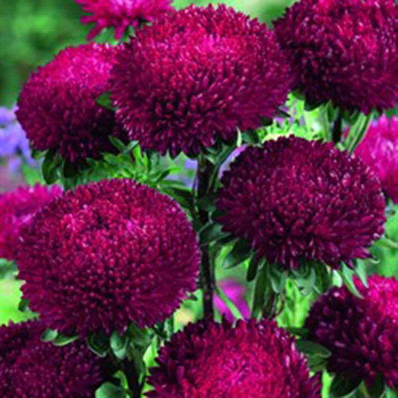 Айстра Балун рубіновий (Callistephus chinensis Balloon) – однорічна рослина висотою 50-60 см.